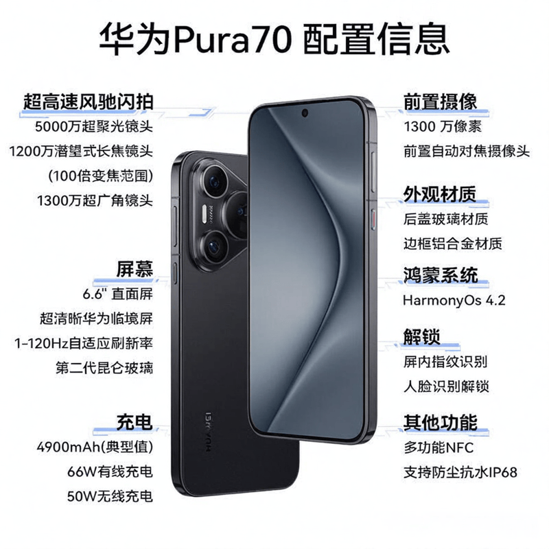 为了提升用户的通信体验,华为 Pura70还具备灵犀通信功能,即使在信号较弱的环境中,亦可保持畅通无阻。同时,这款手机搭载66W双超级快充技术,能够在短时间内为4900mAh大电池充电,减少用户等待的烦恼,随时保持电力满满,陪伴用户畅游丰富的应用生态。