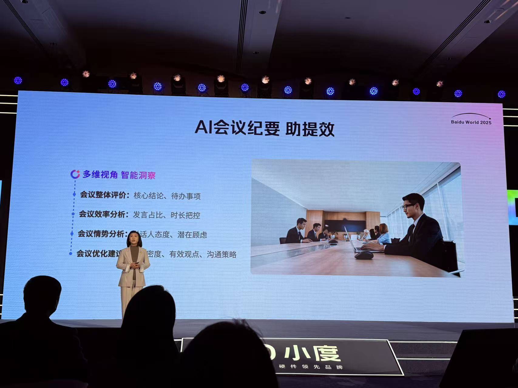 如果客户在现场沟通时没有提出最终决策,AI眼镜还能根据会议的上下文分析其顾虑,并给出跟进建议。此外,小度AI眼镜录制过程中还可以帮助用户拍摄PPT,并在会议总结的合适位置插入。